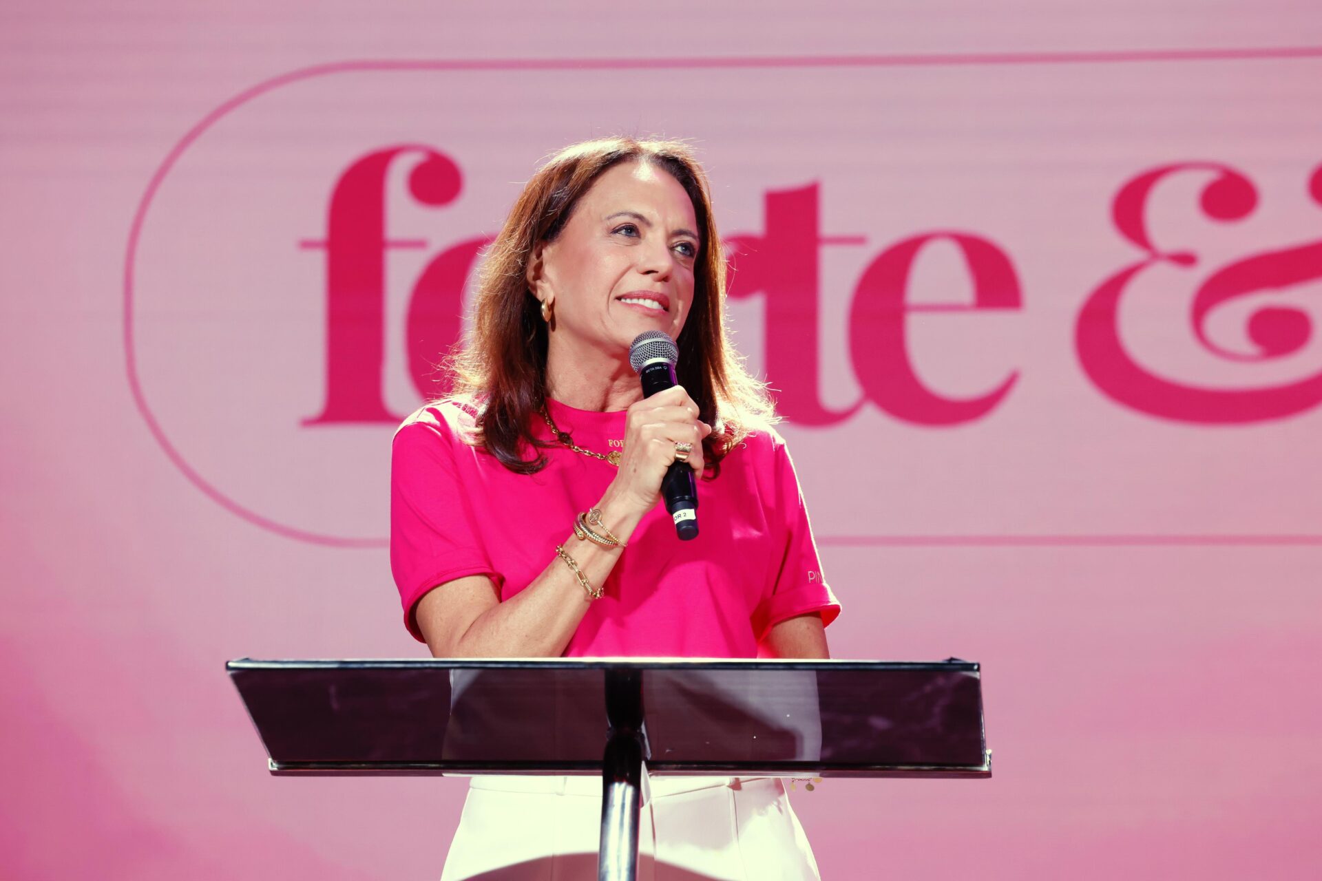 Durante celebração, Pink Tea Forte e Corajosa, na Igreja Fonte da Vida, primeira-dama ressalta as ações realizadas pela igreja evangélica em prol da população em vulnerabilidade social